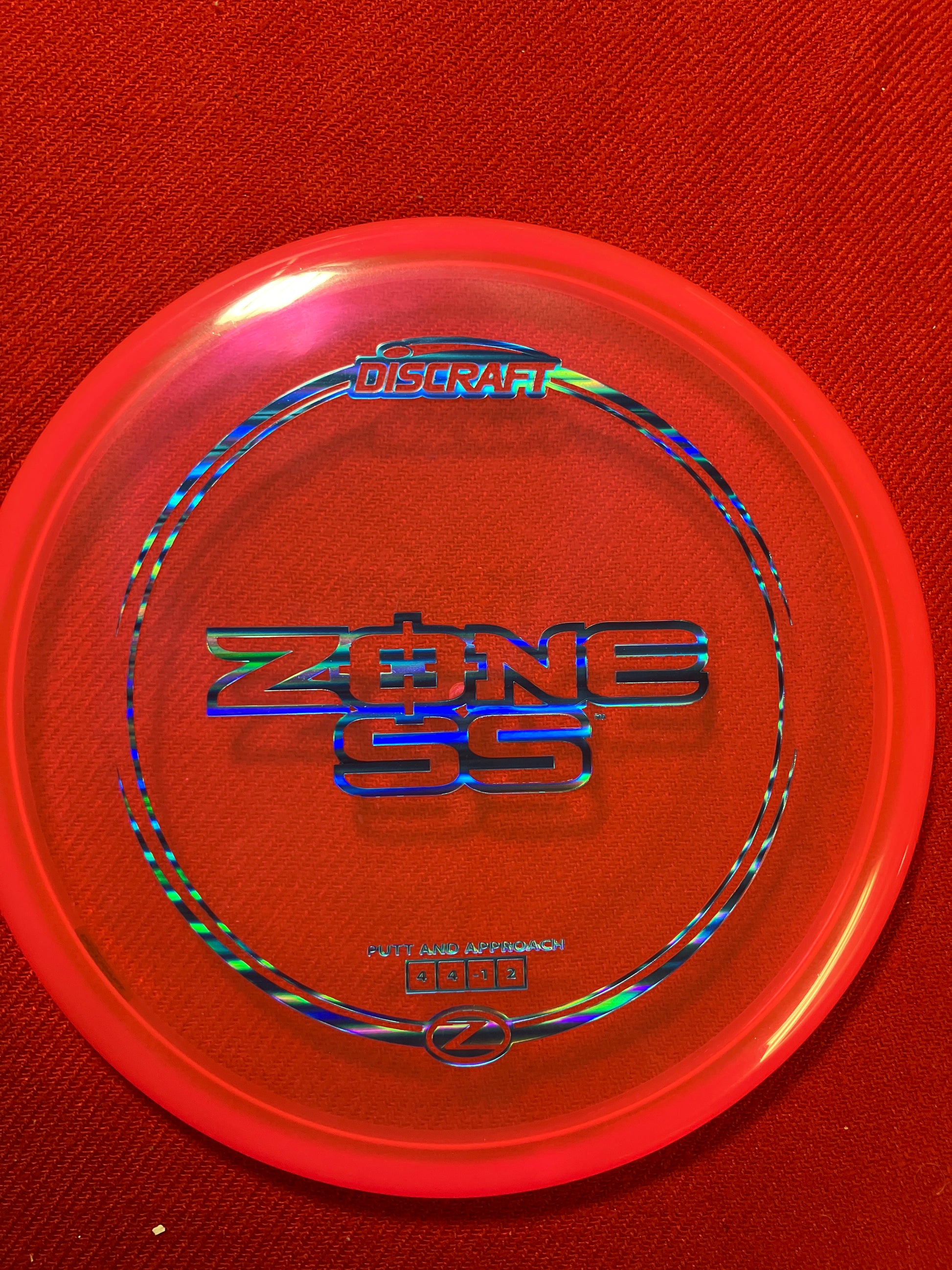These Z Zone SSs are very see-through. A variation on the Zone mold, the disc will tend to have a more neutral flight and less fade. A great approach disc for all experience levels!